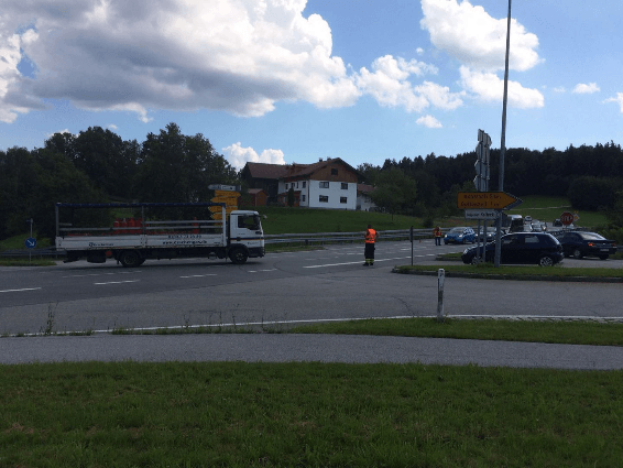 Nach ersten Erkenntnissen war eine 67-Jährige gegen 14 Uhr mit ihrem Seat Ibiza auf der B11 aus Richtung Deggendorf unterwegs und wollte in die Viechtacher Straße einbiegen. Der hinter ihr fahrende BMW-Fahrer erkannt rechtzeitig, dass die Frau anhalten musste, und bremste sein Fahrzeug ab. Ein nachfolgender österreichischer Wohnmobilfahrer aber übersah die stehenden Fahrzeuge und fuhr auf den BMW auf. Dieser rammte den Ibiza, der erst etliche Meter weiter zum Stehen am. Der BMW wurde unter den Anhänger eines Lastwagens geschoben, der in der Gegenrichtung unterwegs war.