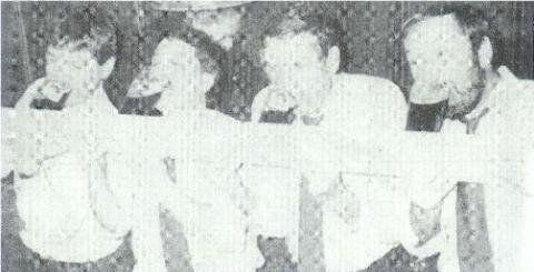 1989 hält auch in Gotteszell die stille Alamierung einzug. Die Wehr erhält 18 Funkmeldeempfänger (sogenannte Piepser), damit wird die Einsatzfähigkeit verbessert, die Einwohner werden bei kleineren Einsätzen nicht aufgeschreckt und auch die Zahl der Schaulustigen verringert sich. 1991 entschloss man sich eine Jugendgruppe zu gründen, da bisher die Neuzugänge in den Aktiven Dienst eingeschlossen waren. Auf Anhieb erklärten sich 8 Jugendliche bereit, sich für den Feuerwehrdienst zu verpflichten. Bis heute erfreut sich die Gruppe eines regen Zuspruchs. Die Ausbildung erstreckt sich nicht nur über das Feuerwehr Einmaleins, sondern auch über Zeltlager, Ausflüge und sportliche Veranstaltungen. Mit Erreichen der Altersgrenze werden sie als voll ausgebildete Feuerwehrmänner in den aktiven Dienst übernommen. Da für die Atemschutzübungenn und Besorgungsfahrten nach Regen oder Zwiesel immer das Löschgruppenfahrzeug benutzt werden musste, für diese Zeit keine Einsatzbereitschaft vorlag, Feuerwehrmänner zu den Einsätzen mit ihren eigenen Fahrzeugen fahren mussten, überlegte man, sich ein zweites Fahrzeug anzuschaffen. Nach Regelung der Kostenfrage kaufte die Wehr aus eigenen Mitteln einen gebrauchten Mercedes - Lieferwagen, der in vielen Arbeitsstunden zu einem Mehrzweckfahrzeug umgebaut wurde. Im November 1994 erteilte Pfarrer Ederer den kirchlichen Segen. Im November 1995 musste die Vorstandschaft der FF Bergern einige Hindernisse überwinden, um die Patenschaft der FF Gotteszell für ihr 90-jähriges Gründungsfest zu erhalten. Folgende Hindernisse waren zu bewältigen: Baumstamm mit - stumpfer - Baumsäge durchsägen; einen Teller Semmelbrösel essen; ein Teller Suppe mit durchlöcherten Löffel essen und synchron ein Glas Bier trinken (Bild). Nach Erfolgreichem Bestehen dieser gestellten Aufgaben, begoss man die Patenschaft bis zum frühen Morgen beim Hacker Bräu.