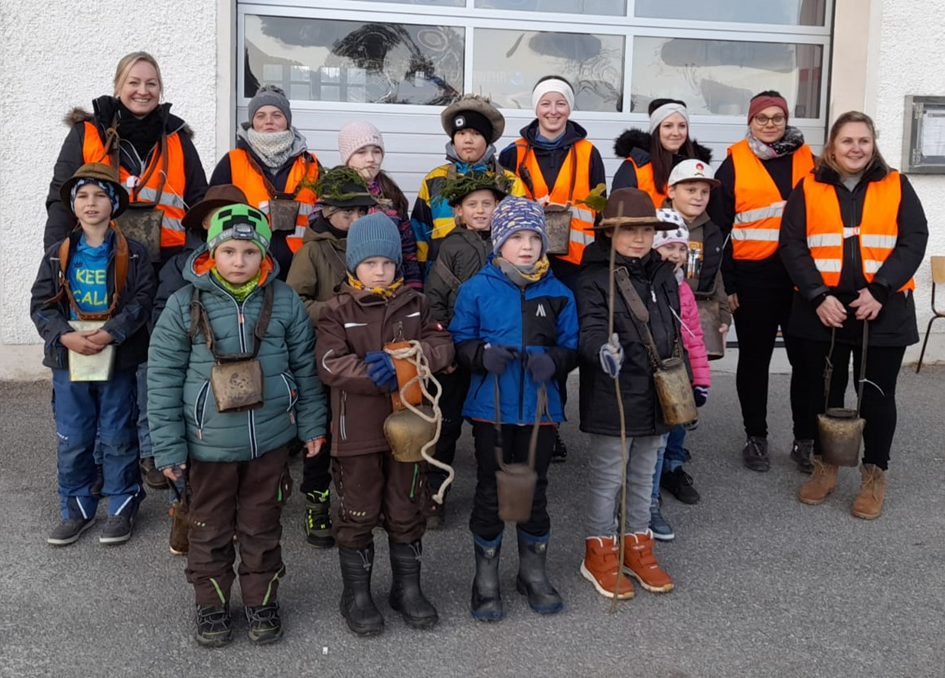 Gotteszell. Letzten Donnerstag ließen es die Kinder der Gotteszeller Kinderfeuerwehr so richtig krachen. Sie machten sich mit ihren Glocken und einer Goisl auf den Weg durchs Dorf zum traditionellen Wolfausläuten. Die Rolle des Hirten übernahm der 8-jährige Laurenz. Seinen Hirtenspruch meisterte er mit Bravour. Die Betreuerinnen übernahmen bei dieser Einheit der Kinderfeuerwehr nur die Aufsicht und hielten sich im Hintergrund. Für die Kleinen war es Highlight, sie waren sich einig, dass sie nächstes Jahr wieder mit Kuhglocken ums Dorf ziehen wollen .